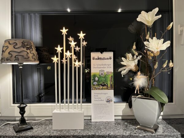 „Der neue Scharfenberger Dorfkalender 2026 hat sich ins Adventsfenster geschmuggelt. Vermutlich, weil er weiß, wie gut – und wie erstaunlich informativ – er aussieht.“