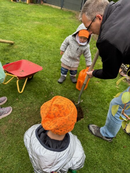Alle haben geholfen, so gut sie konnten und waren sehr stolz, als wir unseren Birnenbaum danach in unserem Garten betrachtet haben.